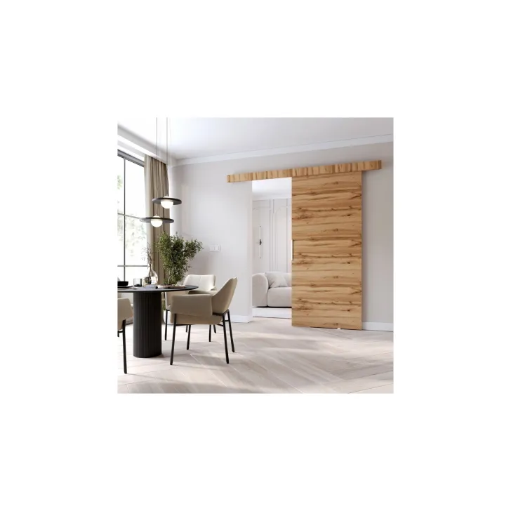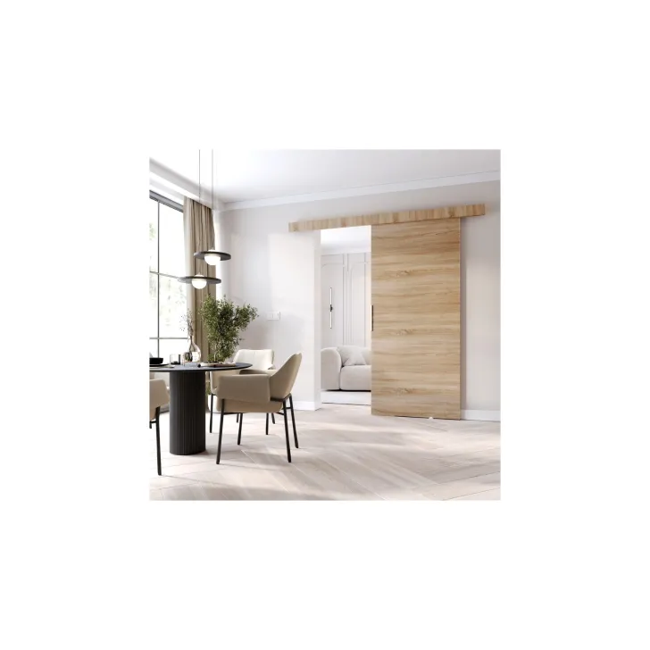 Drzwi przesuwne "CLEAN A" łączą w sobie jakość i nowoczesność. Pozyskane z najwyższej klasy materiałów są nie tylko trwałe, ale również pozytywnie wpływają na estetykę każdego wnętrza. Dodatkowo, drzwi są dostępne w szerokiej gamie kolorów i wzorów, takich jak Wenge, Sonoma dąb, Dąb wotan, Szary, Biały i Czarny, dzięki czemu bez trudu dobierzesz kompozycję pasującą do Twojego domu.