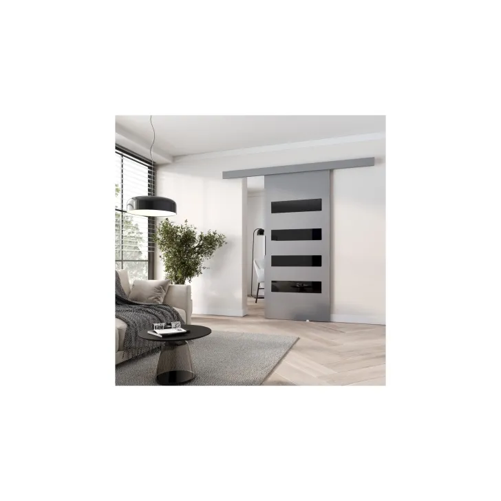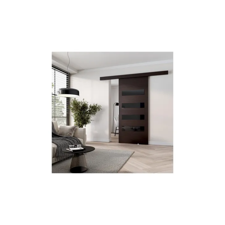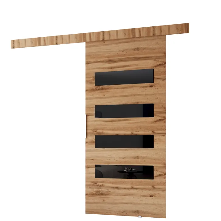 - System przesuwny, dzięki któremu drzwi z łatwością przesuwają się po prowadnicy.