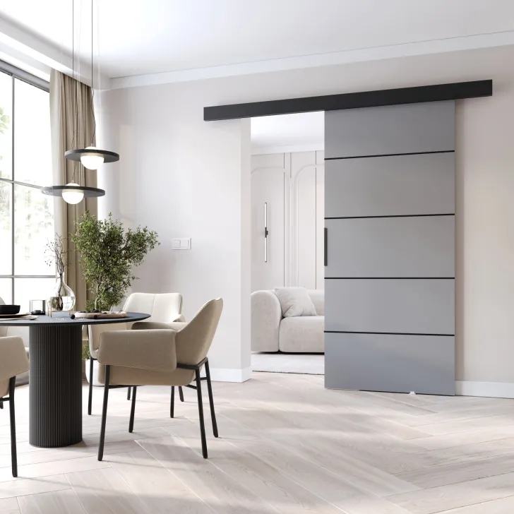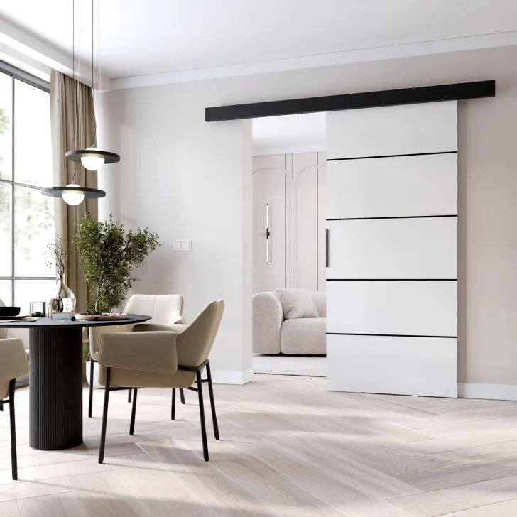 Zapraszamy do odkrycia nowoczesnych Drzwi przesuwnych "PRIM K", które stanowią uniwersalne rozwiązanie dla każdego typu aranżacji. Doskonale pasują do każdego pomieszczenia, niezależnie od jego wielkości i stylu. Wyróżniają się minimalistycznym designem, który wprowadza do wnętrza nutkę nowoczesności, kreując przestrzeń wyglądającą jak wyjętą z pierwszych stron najlepszych magazynów wnętrzarskich.