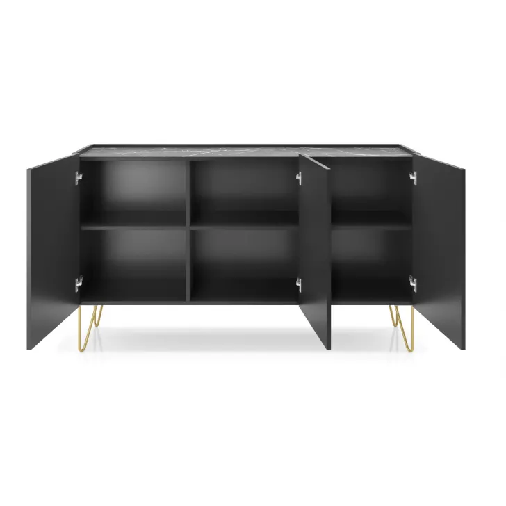 Wyróżnij swoje wnętrze elegancką i funkcjonalną Komodą 144 cm "HAGA"! Jej konstrukcja zapewnia trwałość na lata, a design połączony z mieszanką kolorów sprawia, że komoda ta idealnie wpasuje się w każdy wystrój wnętrza. Dodatkowym atutem są metalowe nogi, które nadają komodzie ciekawego charakteru.