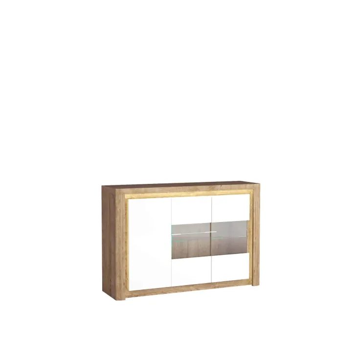 Czy komoda do salonu LIVIO dąb ribbeck/biały jest wyposażona w oświetlenie LED?
