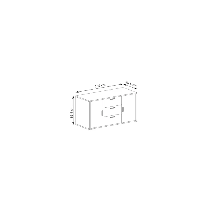 Centralnie umieszczone trzy capacious drawers idealnie sprawdzą się do przechowywania drobiazgów, dokumentów czy akcesoriów domowego użytku. Po bokach usytuowane są dwie zamykane szafki z półkami, które z łatwością pomieszczą różne przedmioty - od ubrań, przez naczynia, po książki. Dzięki temu, Komoda GIFU 2 dostosowuje się do potrzeb każdego pomieszczenia.