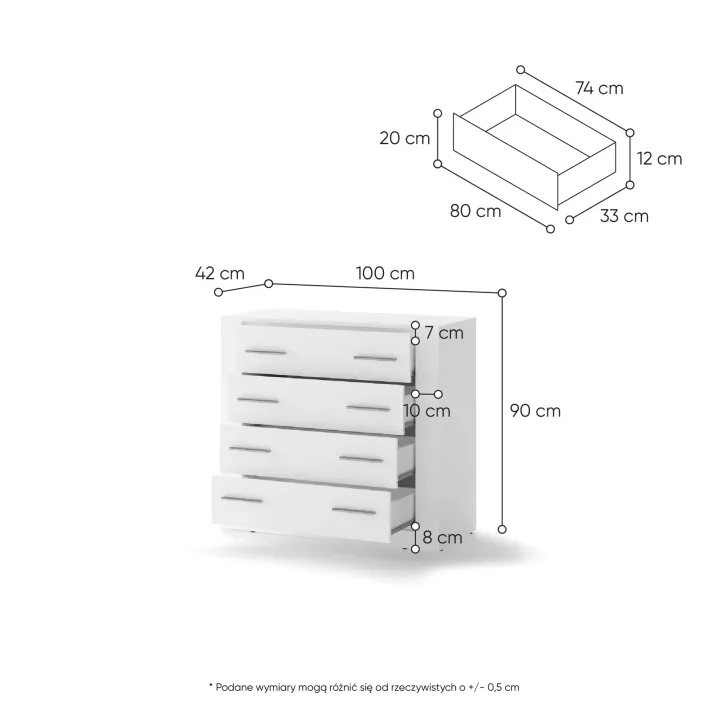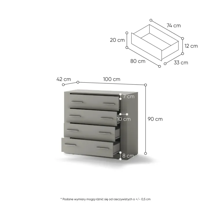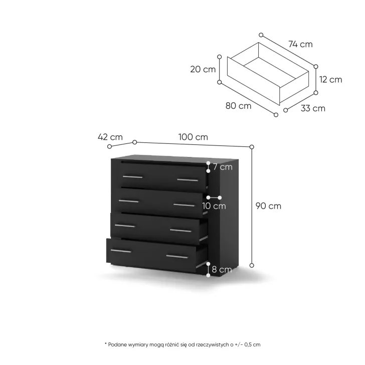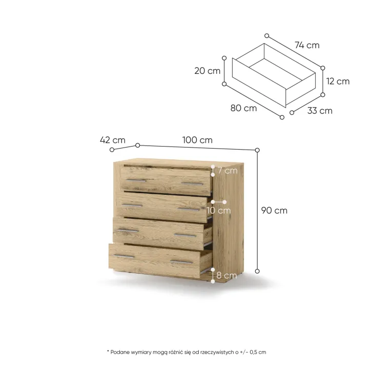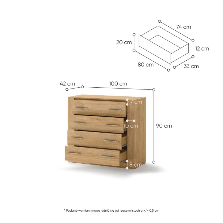 Jakie są wymiary komody JADIA 10?