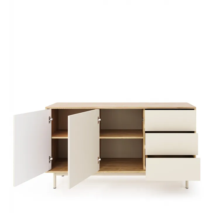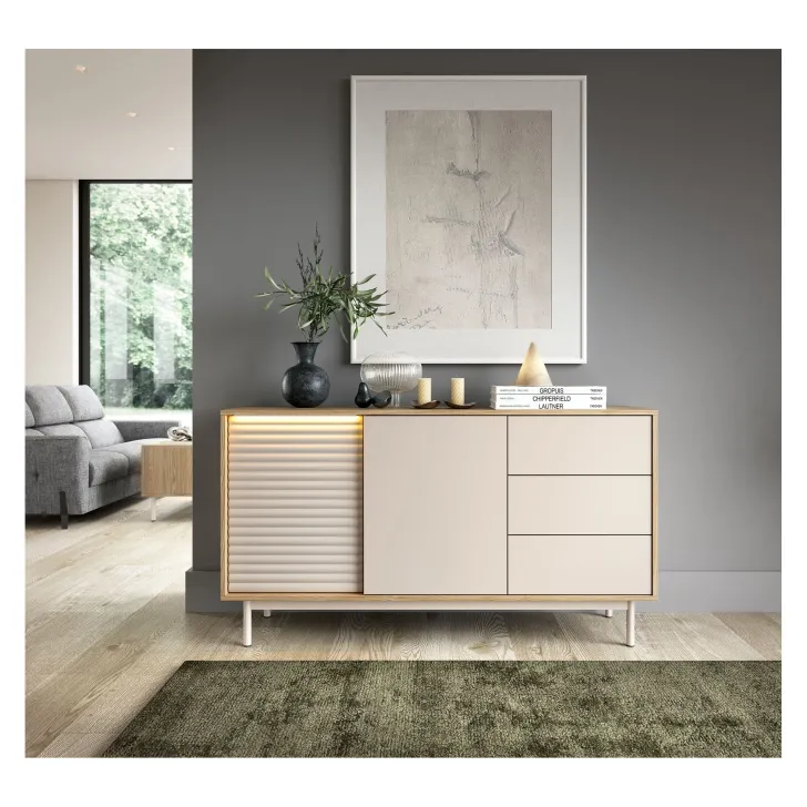 Różne rodzaje pomieszczeń wymagają różnych rozwiązań. Dzięki swojemu uniwersalnemu i eleganckiemu wyglądowi, Komoda LITA 3 będzie doskonałym wyborem dla tych, którzy cenią styl i porządek. Kolekcja LITA, do której należy komoda, to połączenie nowoczesnego minimalizmu z subtelną elegancją. Komoda LITA 3 wyróżnia się wyważonym zestawieniem kolorów kaszmiru i olejowanego dębu, co nadaje jej wyjątkowy charakter.
