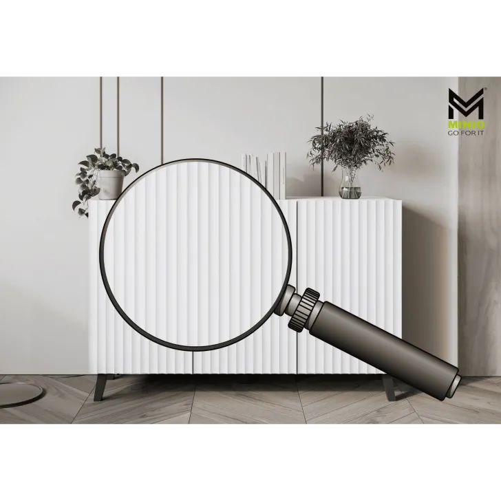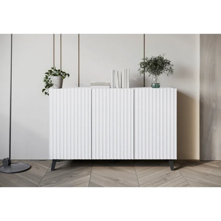 Zadbaj o eleganckie i nowoczesne wykończenie swojego domu dzięki pięknie zaprojektowanej Komodzie "LOKET" o szerokości 120 cm, z frezowanym frontem MDF. Wykonana z materiałów najwyższej jakości, ta komoda nie tylko dodaje stylu do każdego pomieszczenia, ale również dodaje praktycznej przestrzeni do przechowywania. Komoda "LOKET" składa się z wysokiej jakości płyty laminowanej dostępnej w kilku kolorach i wzorach do wyboru, zapewnienia trwałości i wytrzymałości. Dzięki potrójnemu zestawowi drzwi, za którymi znajdują się pojemne wnęki przedzielone półkami, możesz łatwo i wygodnie organizować swoje przedmioty, od biżuterii do bielizny i odzieży. Oprócz funkcjonalności, komoda ta oferuje unikalny styl, który na pewno przyciągnie wzrok. Fronty mebla są frezowane dla dodatkowego efektu, a zastosowany na nich wzór 3D sprawia, że mebel jest wyjątkowy i innowacyjny. Dopełnieniem komody jest szeroki blat, który poza miejsce do przechowywania, jest również idealne do wyeksponowania ozdób czy innych dekoracji, dodając jeszcze więcej uroku Twojemu wnętrzu.