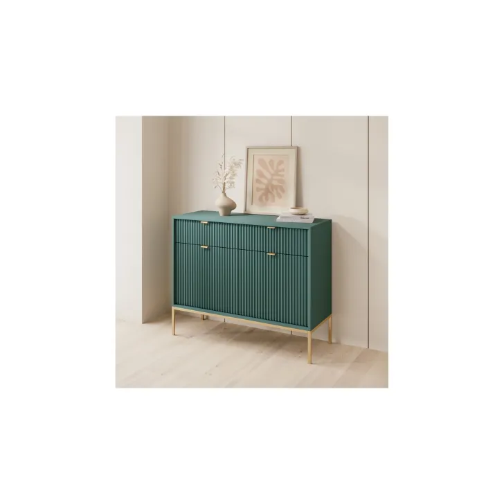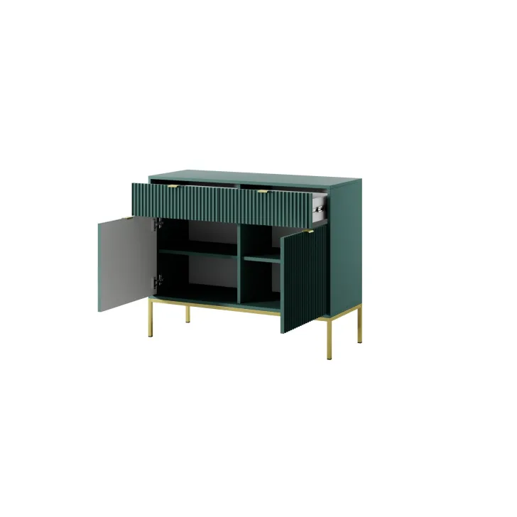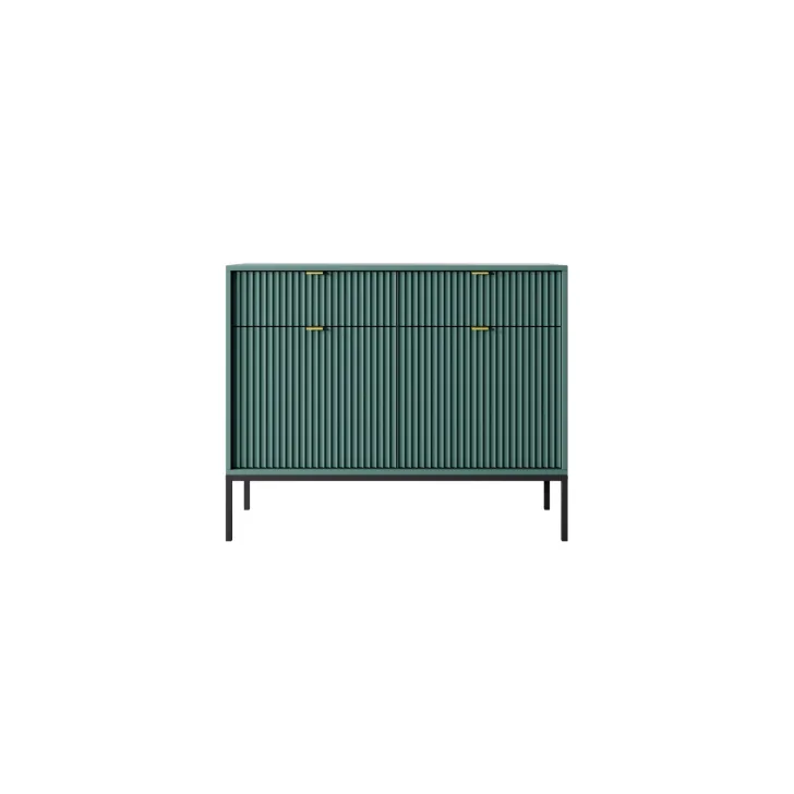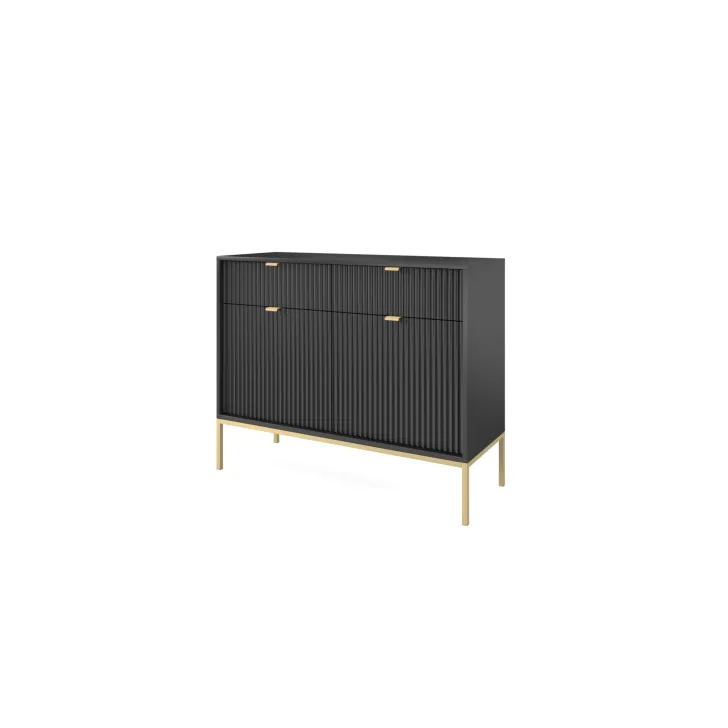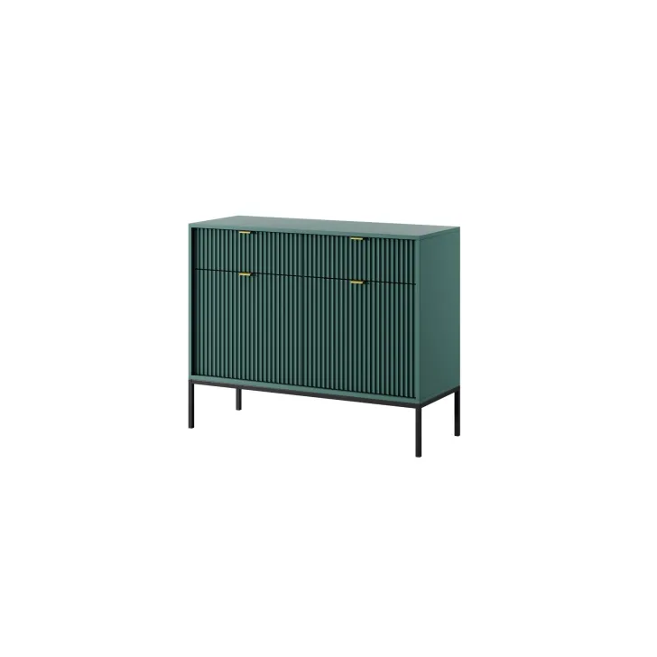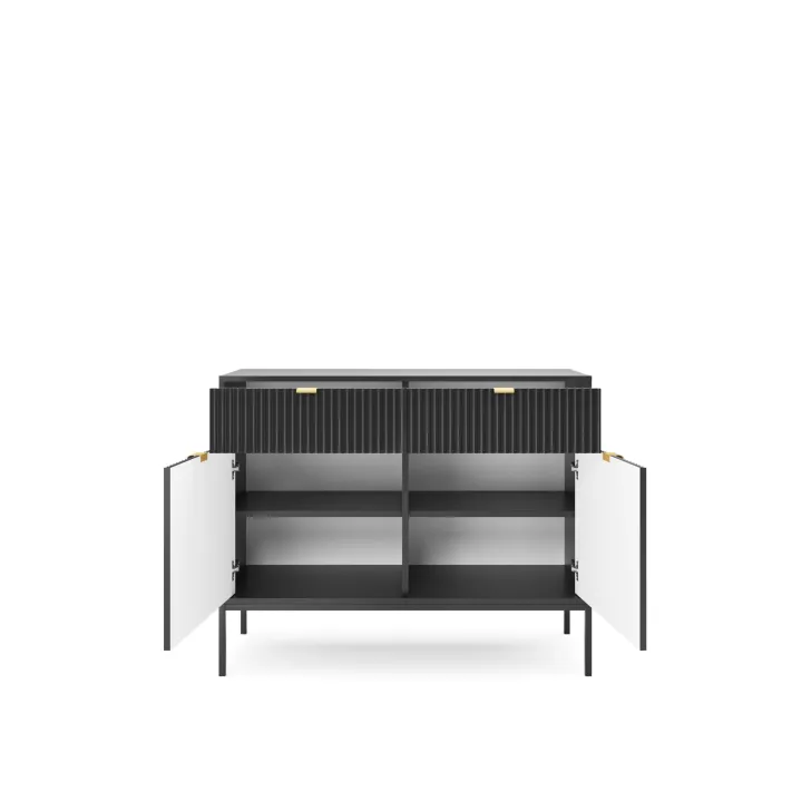 Wybierz spośród wielu kolorów dostępnych dla komody "NOVA" - od neutralnych gracji szarości, bieli i czerni, po żywe akcenty zielonego. Również nogi oraz klamki oferujemy w dwóch wariantach kolorystycznych - złotym i czarnym, dając Ci pełną swobodę w indywidualnym dopasowaniu mebla do wystroju Twojego wnętrza.