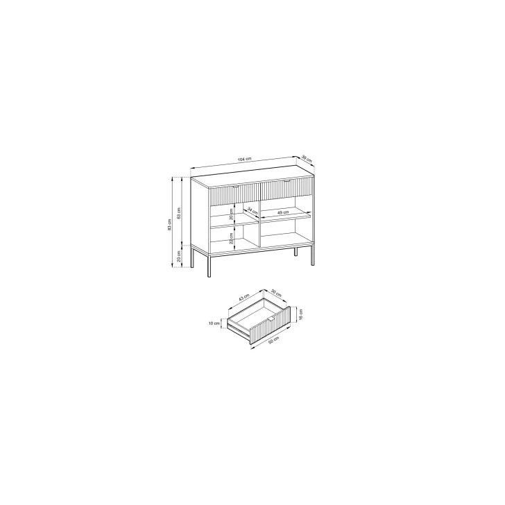 Wymiary Komoda "NOVA" na metalowych nogach: