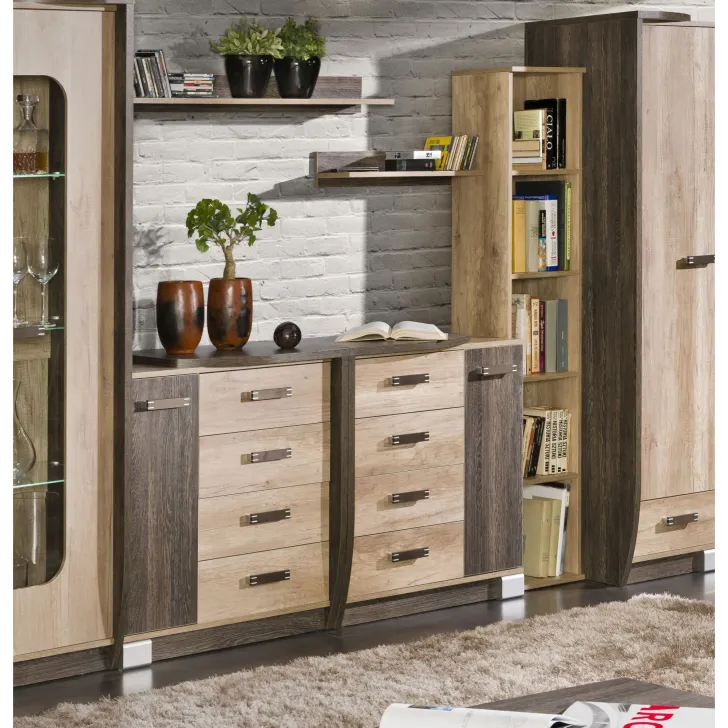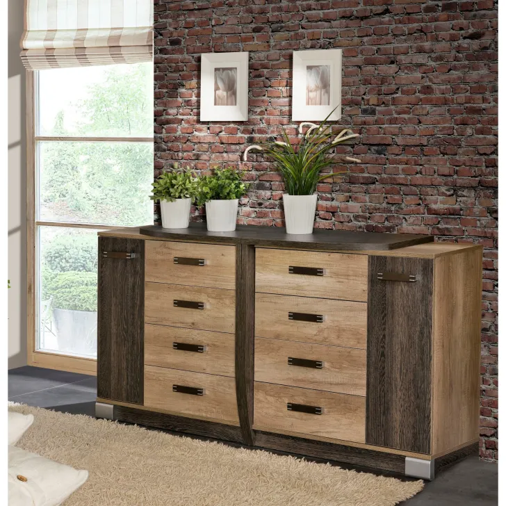 Produkt przykuwa uwagę swoim subtelnym połączeniem barw - dąb Canyon oraz Arusha. To niepowtarzalne zestawienie sprawia, że komoda Romeo stanie się niezastąpioną częścią każdego wnętrza, tanto tych klasycznych, jak i nowoczesnych.