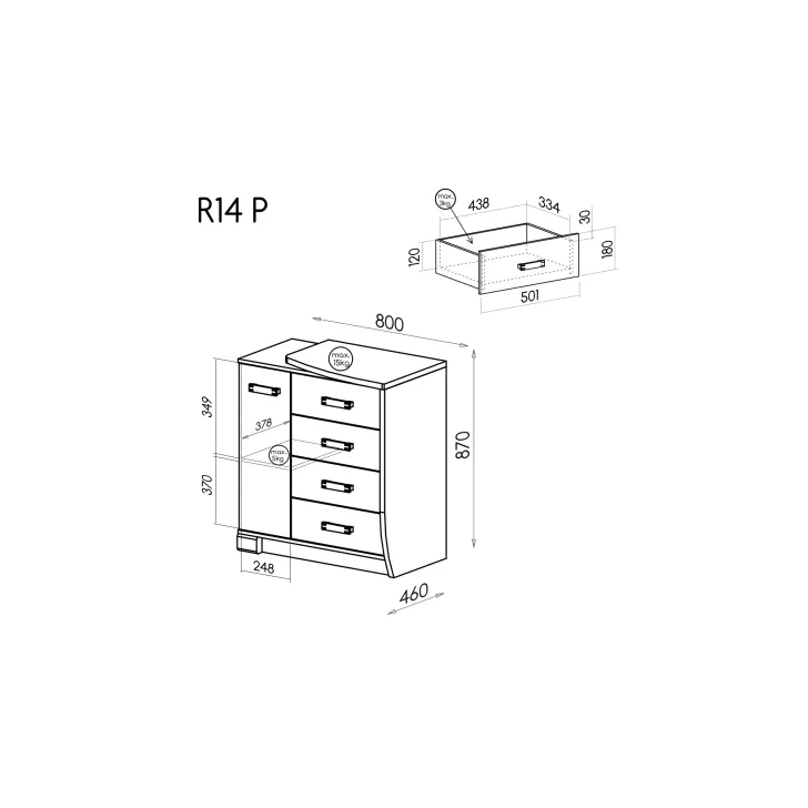 Komoda Romeo została wykonana z bardzo trwałych materiałów - płyty laminowanej oraz obrzeżem ABS pokrywających krawędzie. To gwarantuje jej długi okres użytkowania, a także odporność na zarysowania i codzienne zużycie. Szczególnym udogodnieniem są kulkowe prowadnice szuflad, które zapewniają pełen wysuw, ułatwiają dostęp do zawartości szuflad. Uchwyty wykonane z tworzywa sztucznego to nietuzinkowy detal, który wpływa na ergonomiczne i komfortowe korzystanie z komody.