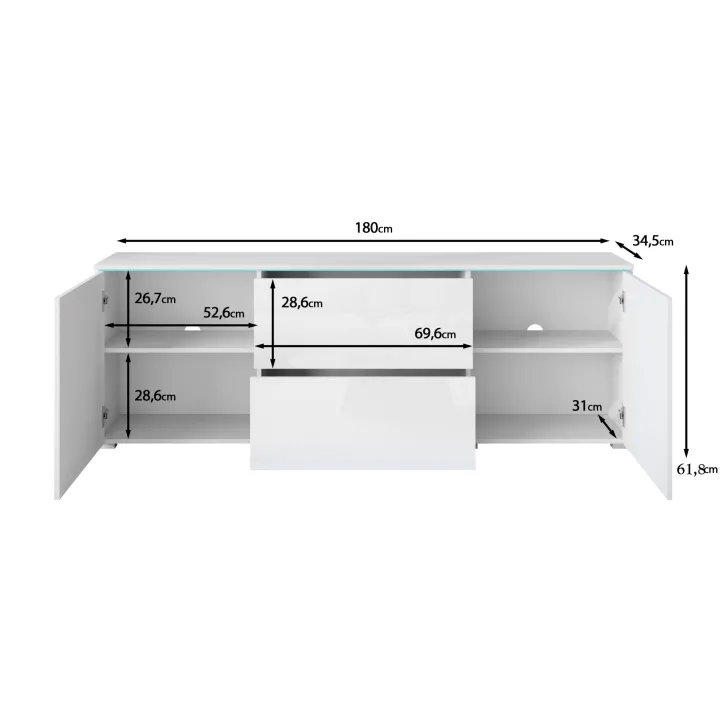 Wymiary Komoda "VEVE" 180 cm z frontami w połysku: