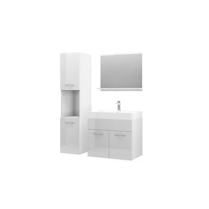 Oferowany zestaw to doskonałe połączenie wytrzymałości i estetyki - korpusy i górne wieńce mebli zostały wykonane z solidnej płyty laminowanej o grubości 15mm, która gwarantuje niezrównaną trwałość produktów. Białe fronty w połysku, wykonane z nowoczesnej płyty polygloss, nadają zestawowi eleganckiego charakteru oraz optycznie powiększają przestrzeń łazienki. Klasyka połączona z nowoczesnością stanowi idealną propozycję dla wielu stylów wnętrzarskich - od minimalistycznych po bardziej dekoracyjne.