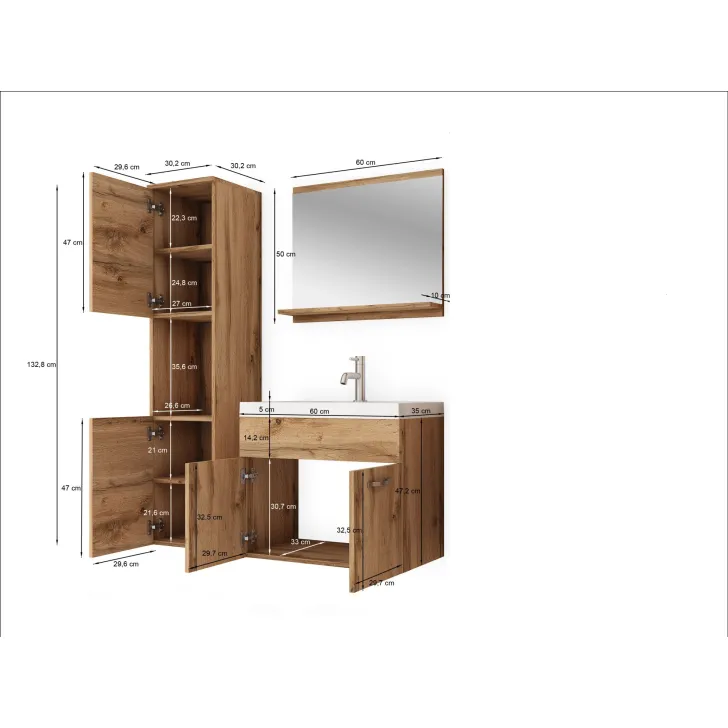 • Szafka pod umywalkę: Wys. 47,5 cm x Szer. 60 cm x Gł. 34,6 cm