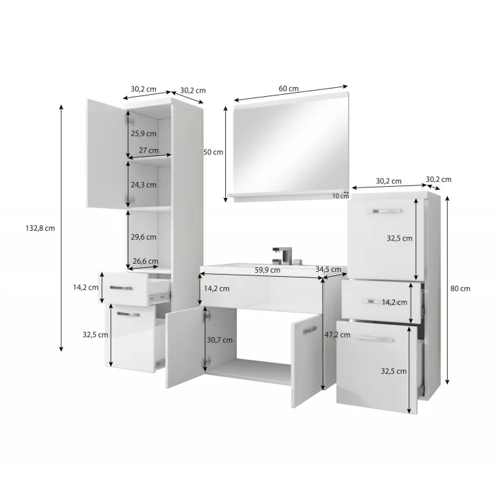 - Szafka pod umywalkę - Wysokość: 47,5 cm, Szerokość: 60 cm, Głębokość: 34,6 cm,