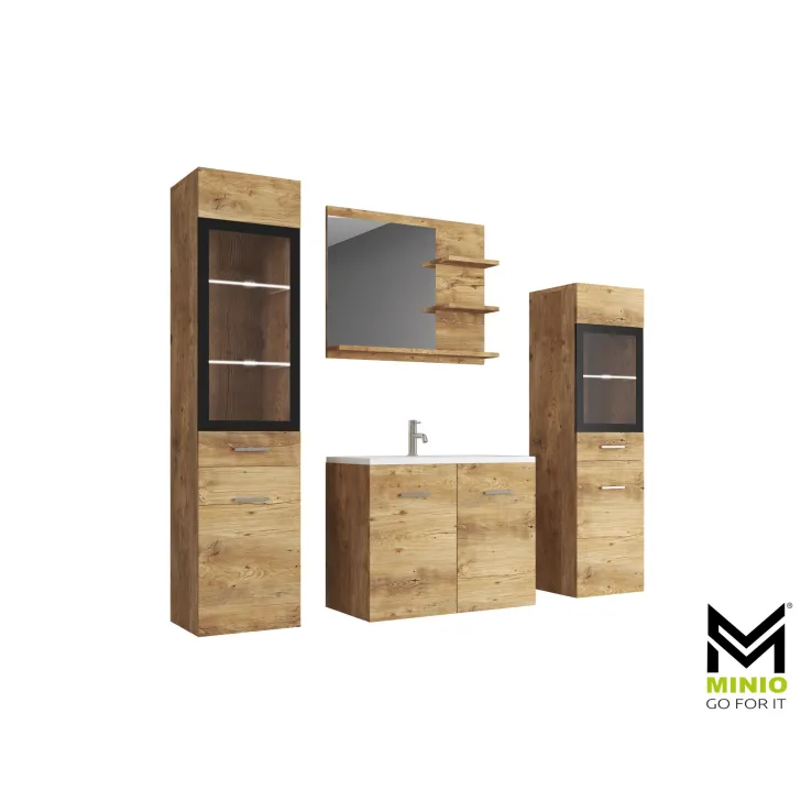 Meble łazienkowe "ALBA" dąb wotan / biały mat wzór ryfle