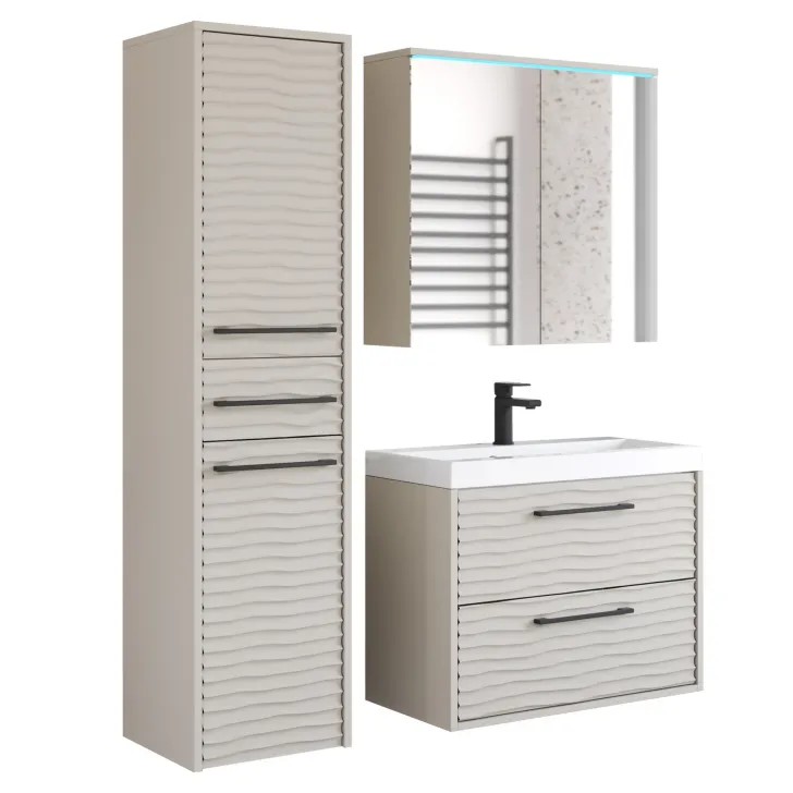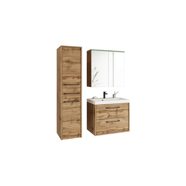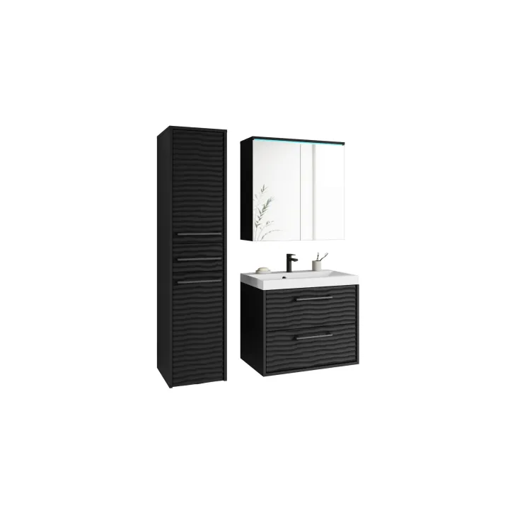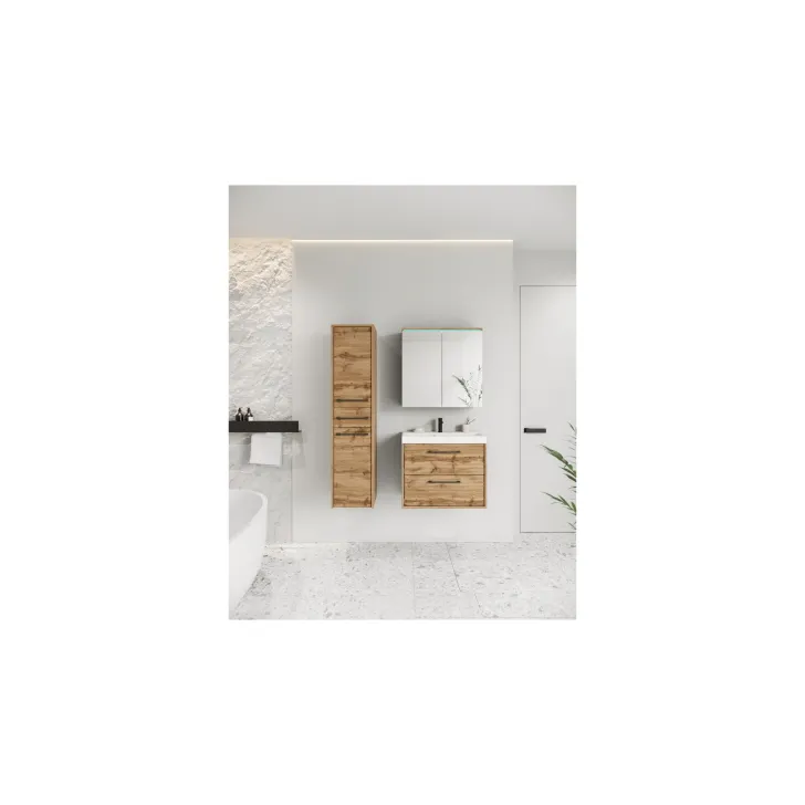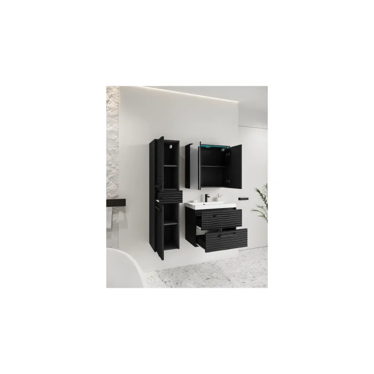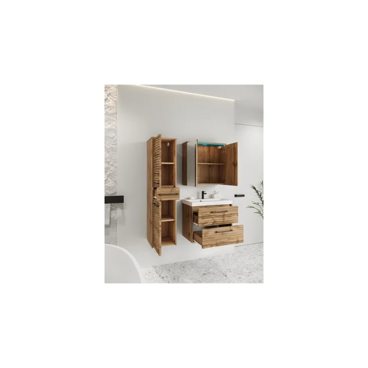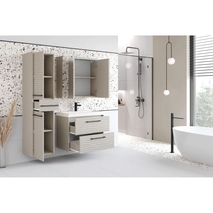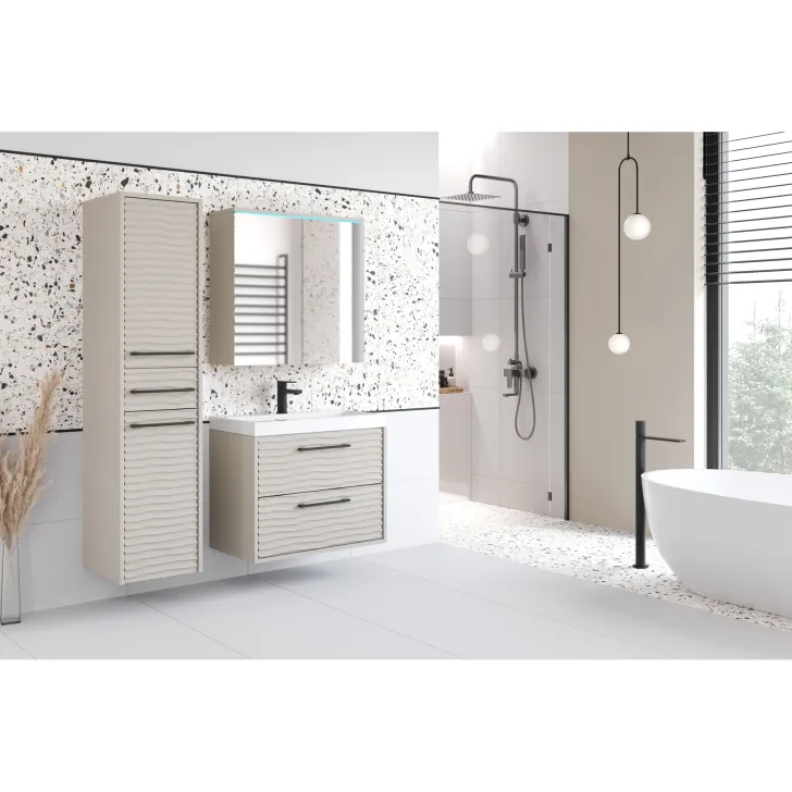 Dostępne są dwa warianty kolorystyczne: Czarny, Dąb wotan i Kaszmir, dzięki czemu możesz dopasować meble do wystroju swojej łazienki. Dodatkowo, opcjonalne oświetlenie LED sprawi, że Twoja łazienka zyska nowoczesny i stylowy wygląd.