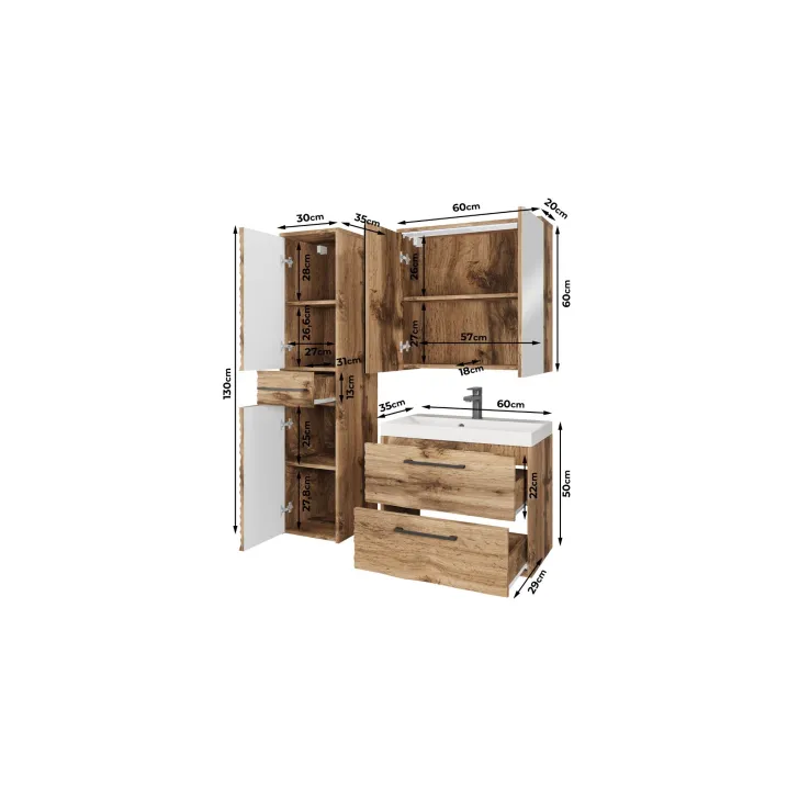 Wymiary Meble łazienkowe "YUKO" z umywalką:
