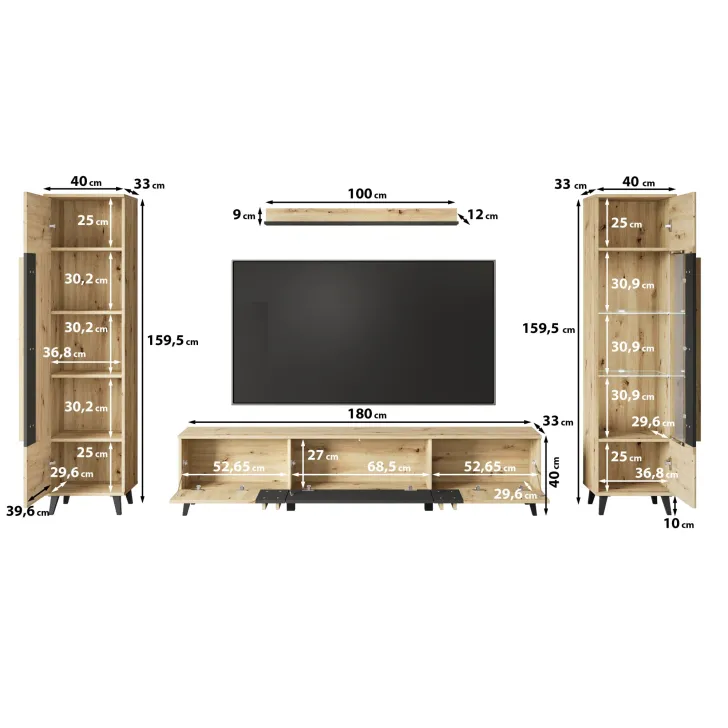 • Szafka RTV: Szer. 180 cm x Wys. 40 cm x Gł. 33 cm