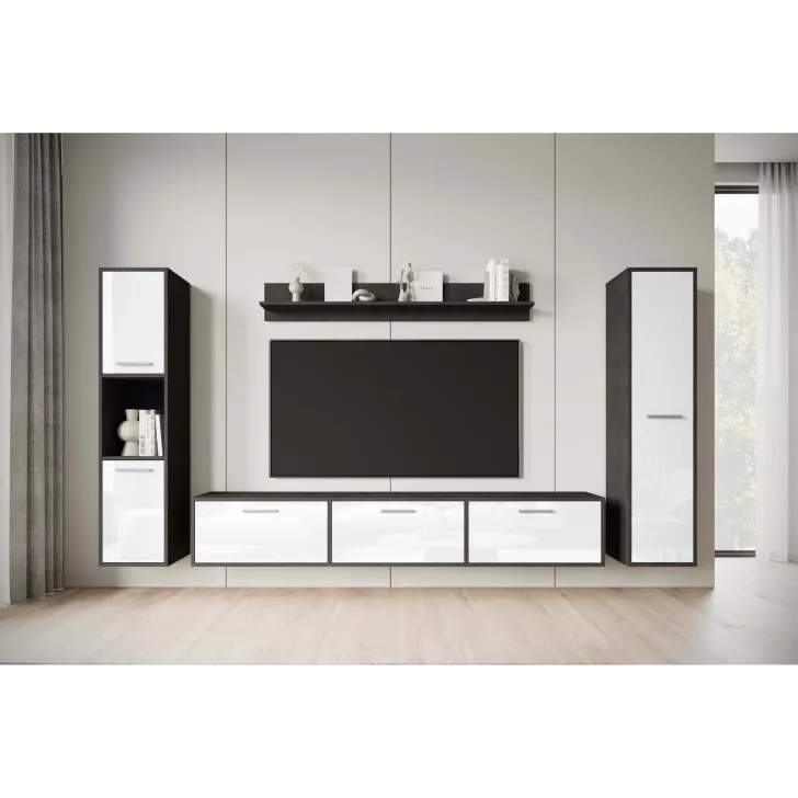 Meblościanka PARMA kolor grafit Matera / biały połysk