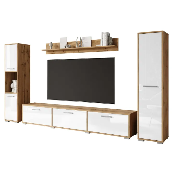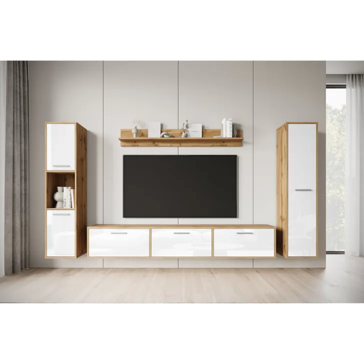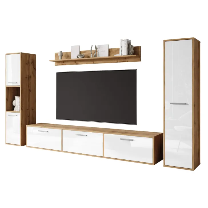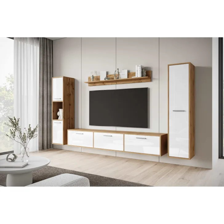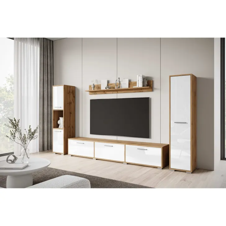 Meblościanka PARMA dąb wotan/biały połysk