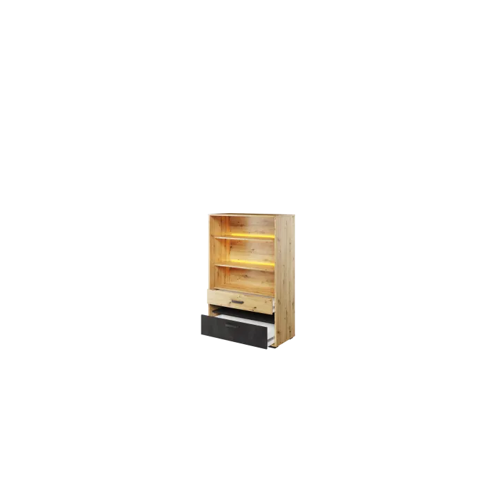 Regał z dwoma szufladami QUBIC dąb artisan/raw steel/silk flou