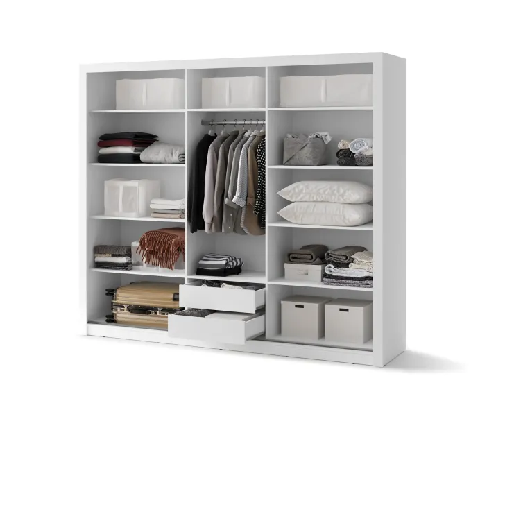Zapraszamy do zapoznania się z ofertą Szafy JADIA 11 dostępnej w uniwersalnym kolorze białym. Ta niezwykle przestronna szafa wyróżnia się atrakcyjnym designem i przemyślaną konstrukcją, która z powodzeniem pomieści wszystkie niezbędne elementy garderoby, pomagając zachować porządek. Jej minimalistyczny wygląd zadowoli miłośników zarówno nowoczesnych, jak i klasycznych stylów, idealnie wpisując się w każde wnętrze.