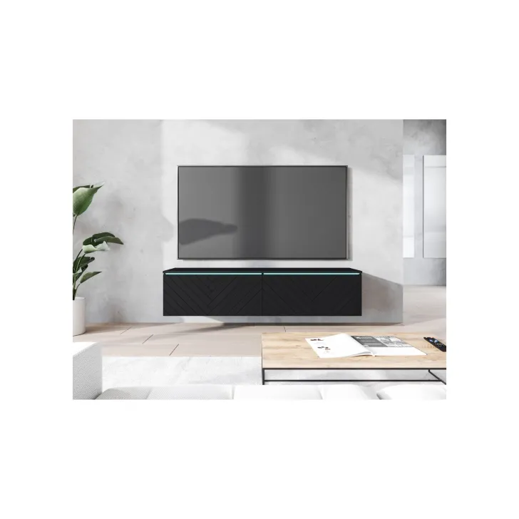 Szafka DONNA RTV 140 cm czarny grafit / front MDF Jodełka
