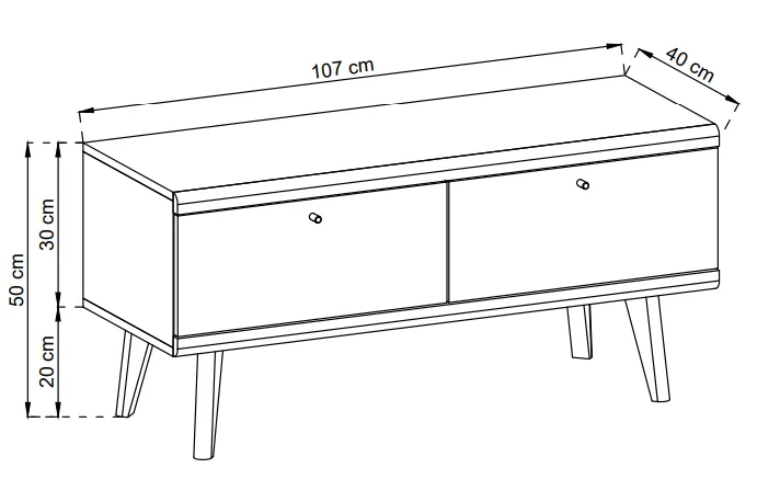 Wymiary Szafka pod telewizor OSLO 107 cm dąb riviera/biały: