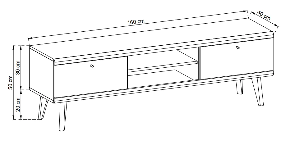 Wymiary Szafka pod telewizor OSLO 160 cm dąb riviera/biały: