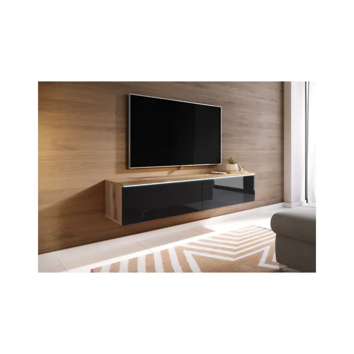 Szafka RTV "DIDI" 140 cm dąb Wotan / czarny połysk