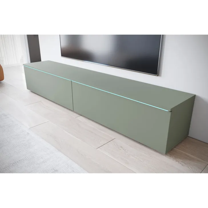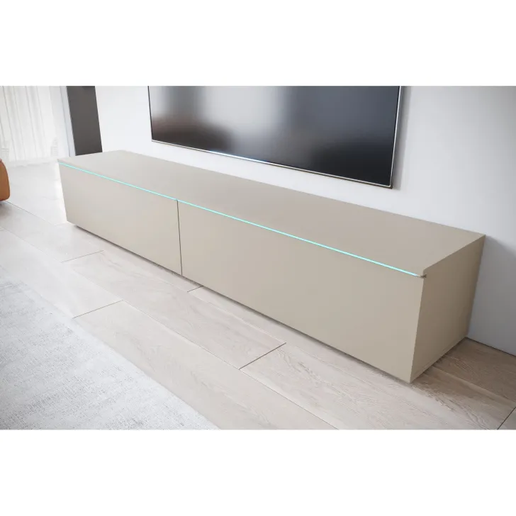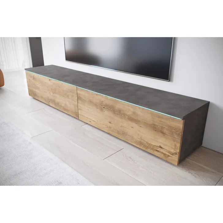 Miejsce na sprzęt audio i nośniki danych, modny design oraz funkcjonalność to najważniejsze cechy Szafki RTV DONNA 180 cm. Wybierz dodatkową opcję oświetlenia LED, które z pewnością przyniesie do wnętrza jeszcze więcej przytulnej atmosfery. Efektowne opływowe światło podkreśli oryginalny wygląd mebla.