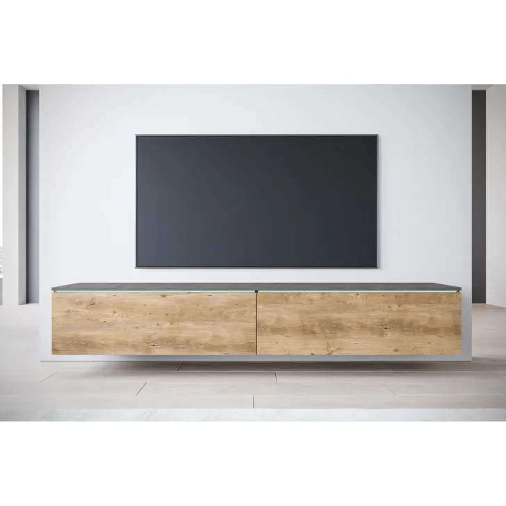 Właściwie dobrana Szafka RTV DONNA 180 cm wprowadzi do Twojego salonu czy pokoju młodzieżowego zdecydowanie więcej nowoczesności i funkcjonalności. Szafka może służyć zarówno jako mebel stojący, co jest idealnym rozwiązaniem dla miłośników klasycznych aranżacji, jak i wiszący. Umocowana na ścianie szafka niesie ze sobą nutę nowoczesności oraz wizualną lekkość.