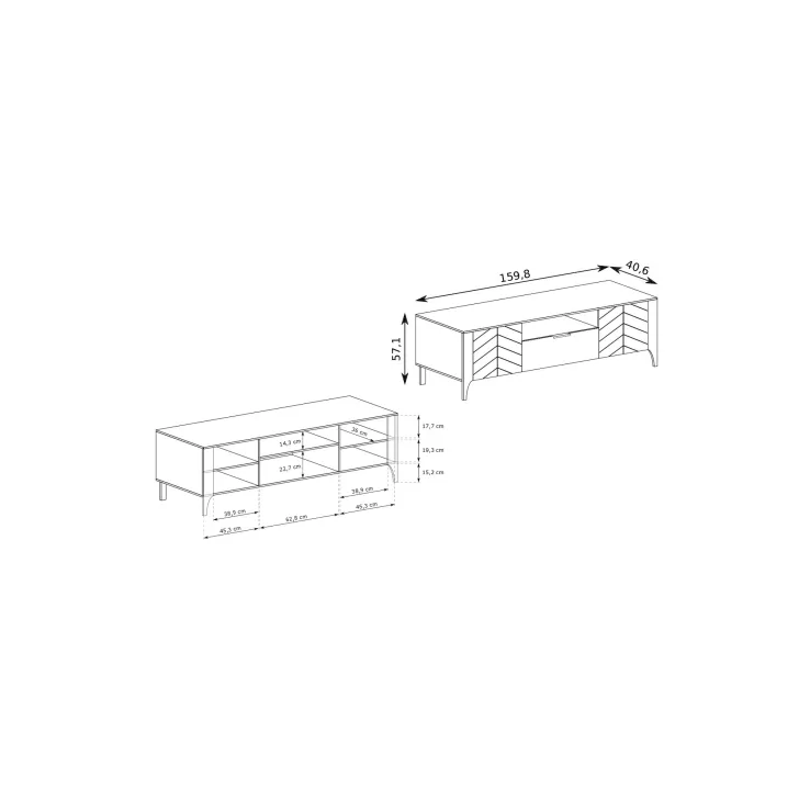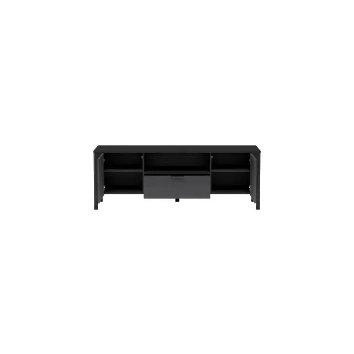 Niezwykle funkcjonalna szafka RTV oferuje dużo miejsca do przechowywania, dzięki dwóm zamykanym szafkom z pojemnymi półkami oraz szufladzie, która idealnie sprawdzi się do przechowywania drobnych akcesoriów. Dodatkowo, otwarta, praktyczna wnęka to doskonałe miejsce na dekoder czy ulubione książki.