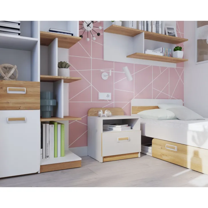- Uniwersalny styl - Bez względu na to, czy jesteś fanem nowoczesnej czy tradycyjnej estetyki, ta półka doda twojemu wnętrzu wyjątkowego charakteru. Dąb Nash / Biały Brylantowy to chwytliwa kompozycja, która sprawdzi się w salonie, sypialni, biurze, a nawet w przedpokoju.
