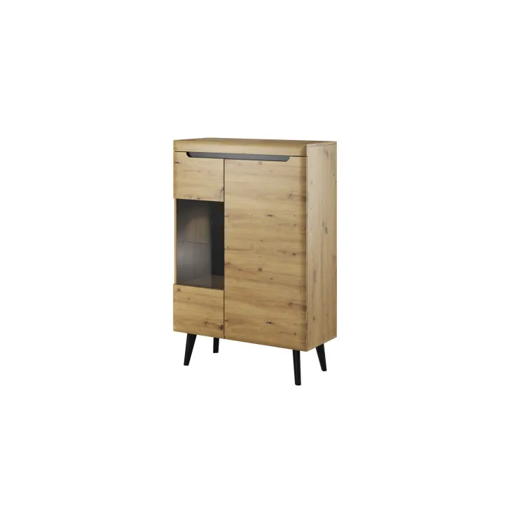 Doskonale zaprojektowana Witryna niska do salonu BODO 90 cm zaspokoi Twoje pragnienie porządku i elegancji. Częściowo przeszklone drzwi pozwalają na prezentację ulubionych ozdób, podczas gdy dodatkowe, pełne drzwi, skryją przed wzrokiem wszystko to, co lepiej pozostawić poza zasięgiem gości.