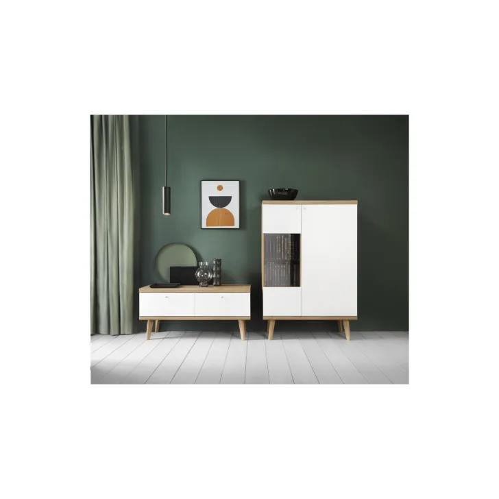 Witryna niska do salonu OSLO dąb riviera/biały
