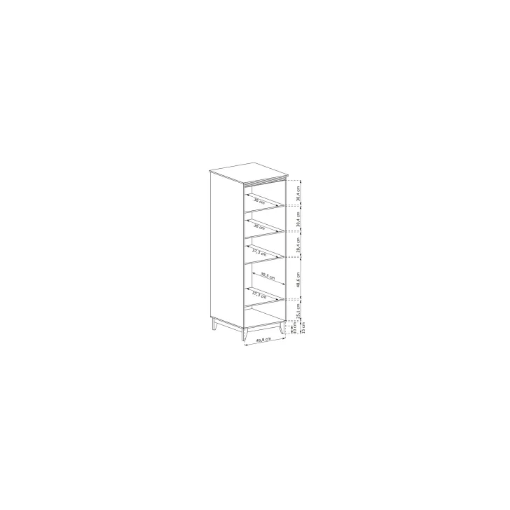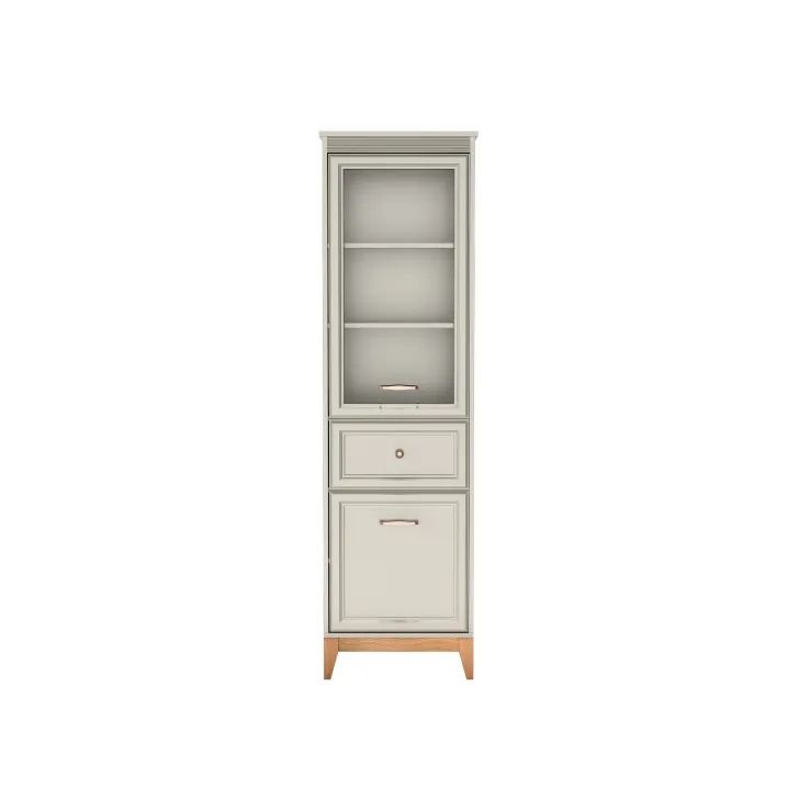 • Bryła mebla charakteryzuje się smukłą wysokością, oferując praktyczne i estetyczne rozwiązania do ekspozycji i przechowywania.