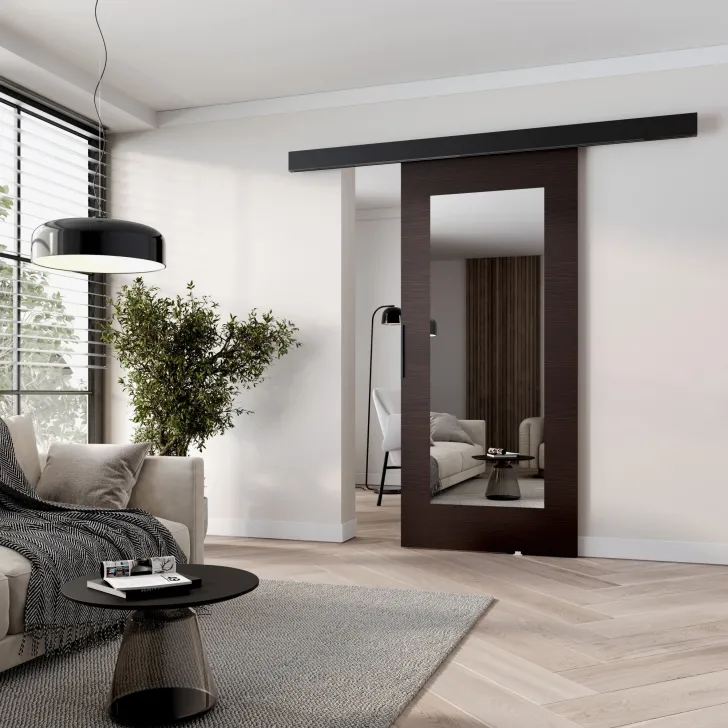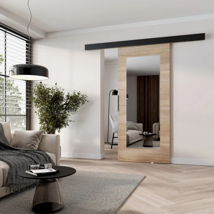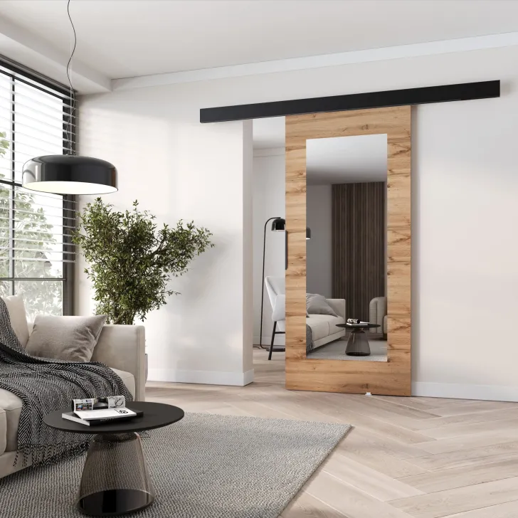 Rozwiązanie to jest idealnym wyborem dla tych, którzy szukają innowacyjnych rozwiązań w swoim domu. Drzwi przesuwne "PRIM I" zapewniają nie tylko oszczędność miejsca, ale także elegancję i estetykę. Na front drzwi umieszczone jest lustro, co dodatkowo podkreśla ich styl i ułatwia codzienne korzystanie.