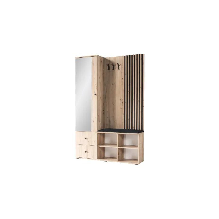 Garderoba "MALI" 129 cm, z lustrem i tapicerowanym siedziskiem, kolor dąb Artisan