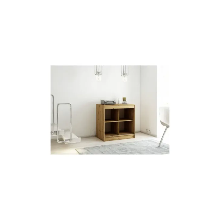 Komoda "LAMELLO" to połączenie funkcjonalności z wyjątkowym stylem. Odznacza się solidnym wykonaniem - do jej produkcji użyto wysokiej jakości płyty laminowanej, która zapewnia wytrzymałość mebla na lata. Dodatkowo, krawędzie komody pokryte są obrzeżem ABS, co zwiększa jej trwałość i daje gwarancję bezpieczeństwa podczas użytkowania.
