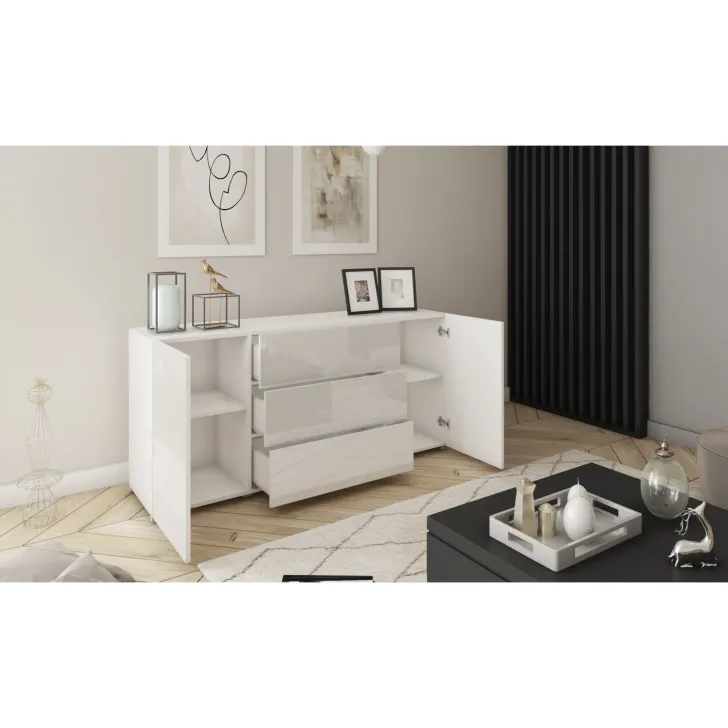 Komoda LIVIO 144 cm dąb ribbeck/biały połysk