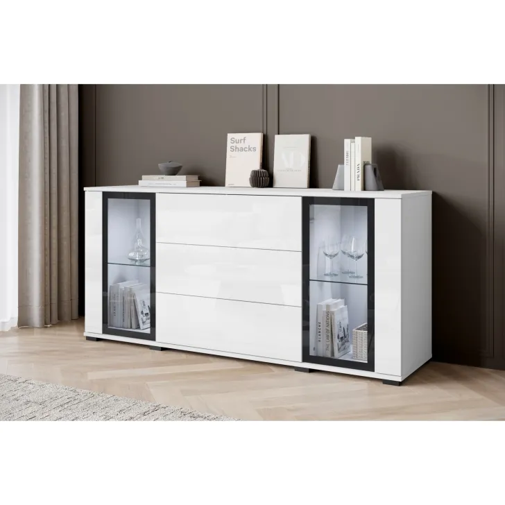 Opcjonalne oświetlenie LED potrafi subtelnie akcentować zawartość witryn, wprowadzając w ten sposób przyjemny nastrój do każdego pomieszczenia. Niezależnie od dodatków, komoda FARO 150 cechuje się solidnym wykonaniem oraz nowoczesnym designem.