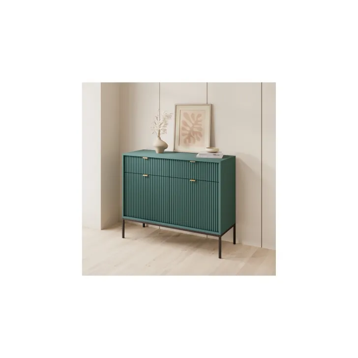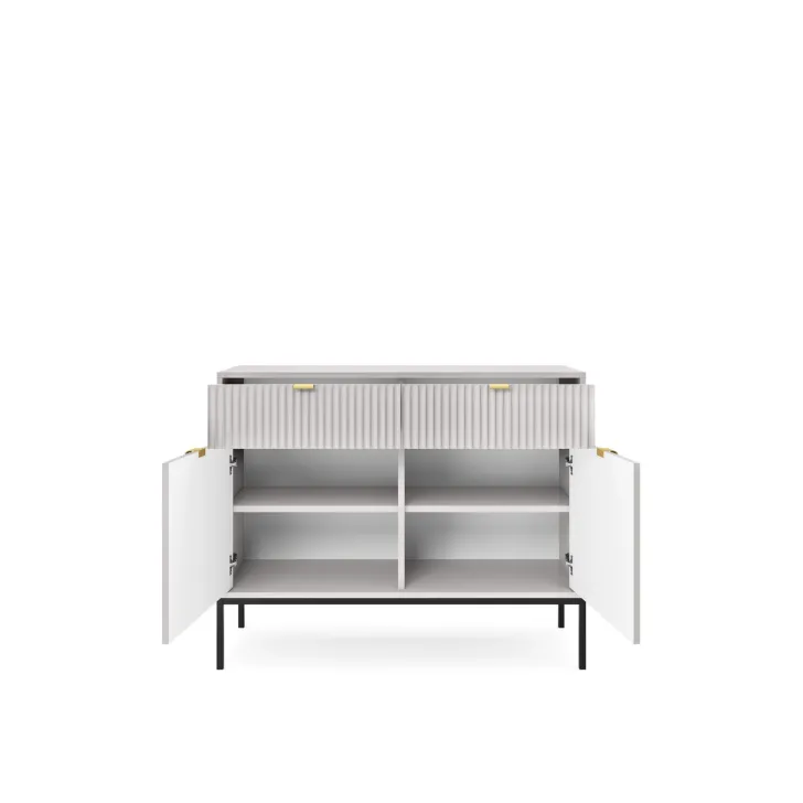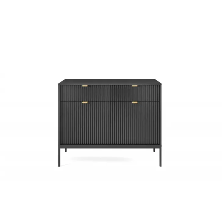 Wybierz spośród wielu kolorów dostępnych dla komody "NOVA" - od neutralnych gracji szarości, bieli i czerni, po żywe akcenty zielonego. Również nogi oraz klamki oferujemy w dwóch wariantach kolorystycznych - złotym i czarnym, dając Ci pełną swobodę w indywidualnym dopasowaniu mebla do wystroju Twojego wnętrza.