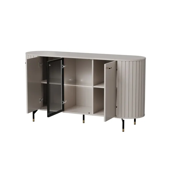 Komoda ZAMA 3 dostępna jest w dwóch wariantach kolorystycznych - beżowym lub czarnym - aby dopasować się do każdego stylu i wystroju wnętrza. O przyjaznej obsłudze świadczą zawiasy i prowadnice z cichym domykiem, a szyby w kolorze Antisol dodają lekkości i elegancji. Dodatkowo, dajemy Ci możliwość zamówienia komody z oświetleniem LED - opcja ta sprawi, że Twój salon nabierze nowego wymiaru po zmroku.