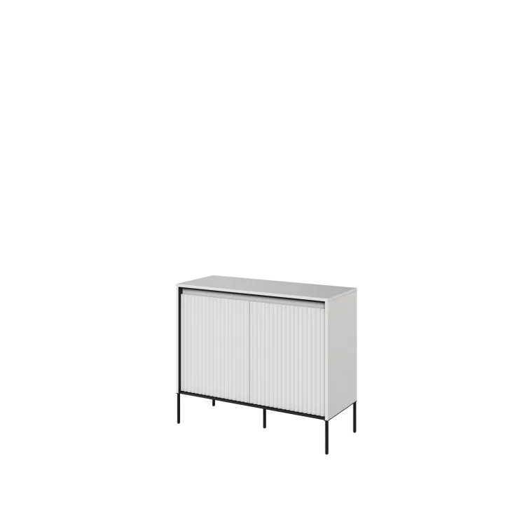 Mała komoda TREVIOLO dostępna jest w pięciu atrakcyjnych wersjach kolorystycznych: piaskowy beż/czarny z frezowaniem półwałek, biały/czarny oraz szary/czarny z frezowaniem półkole, czarny oraz dąb artisan/czarny z frezowaniem proste. Wybór kolorystyki pozwoli Ci idealnie dopasować komodę do estetyki Twojego wnętrza.