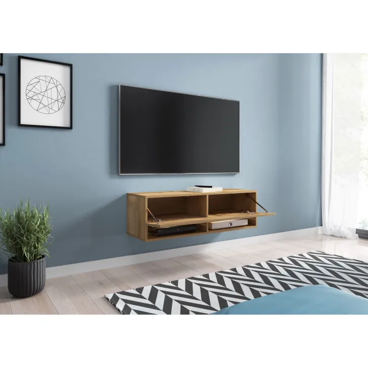 Jednym z dodatkowych atutów, które czynią ją unikalnym dodatkiem do Twojego salonu, jest możliwość zamówienia oświetlenia LED. To nowoczesne, a jednocześnie dyskretne rozwiązanie pozwoli Ci stworzyć zachwycającą atmosferę w swoim pomieszczeniu. Komfort to nie tylko styl, ale także użyteczność. Szafka RTV cechuje się kompaktowymi wymiarami. W konfiguracji wiszącej potrafi udźwignąć do 20 kg, natomiast w wersji stojącej nawet do 40 kg. To umożliwia bezpieczne umieszczenie różnorodnych urządzeń RTV i dekoracji, zapewniając przy tym styl i ład.
