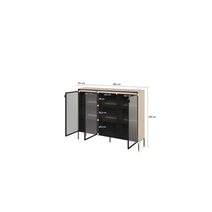 Wymiary Przeszklona komoda "TREVIOLO", witryna: