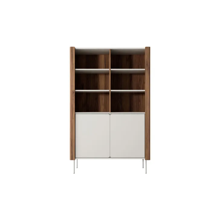 Regał VEZERE nie tylko wygląda lekko i subtelnie dzięki wysokim nóżkom, ale dodatkowo ułatwia utrzymanie czystości pod nim - szczególnie ważne w codziennym użytkowaniu. Opierając się na otwartych półkach oraz zamykanej szafce, regał oferuje dużą pojemność, idealną do organizacji książek, dekoracji oraz innych przedmiotów codziennego użytku. Jeżeli planujesz wykorzystać ten produkt w swoim gabinecie, sprawdzi się doskonale jako miejsce na dokumenty.