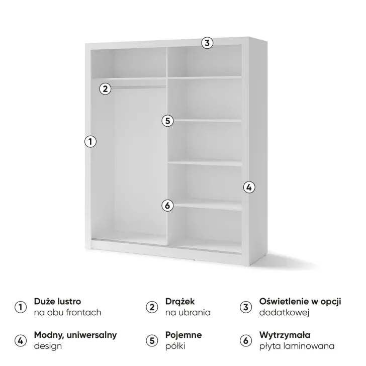 - Drzwi przesuwne z lustrami optycznie powiększają wnętrze, co dodaje elegancji każdemu pomieszczeniu.