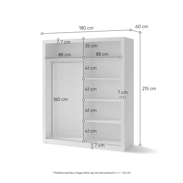 - Wyposażenie: 5 półek, 2 drążki