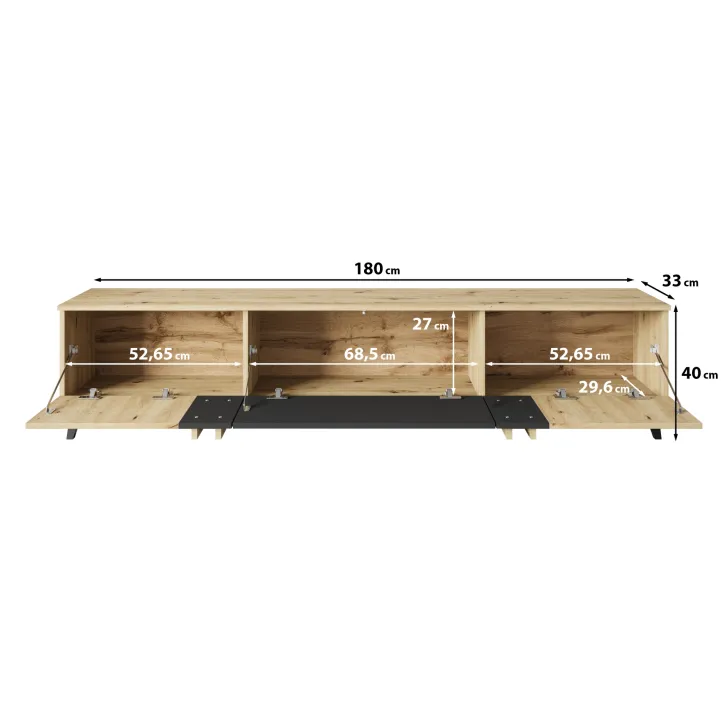 Szafka RTV HURON to elegancka i praktyczna propozycja dla tych, którzy szukają doskonałego mebla na sprzęt RTV. To harmonijne połączenie estetyki z wygodą codziennego użytkowania, gwarantujące nie tylko styl, ale i funkcjonalność w każdym domu.